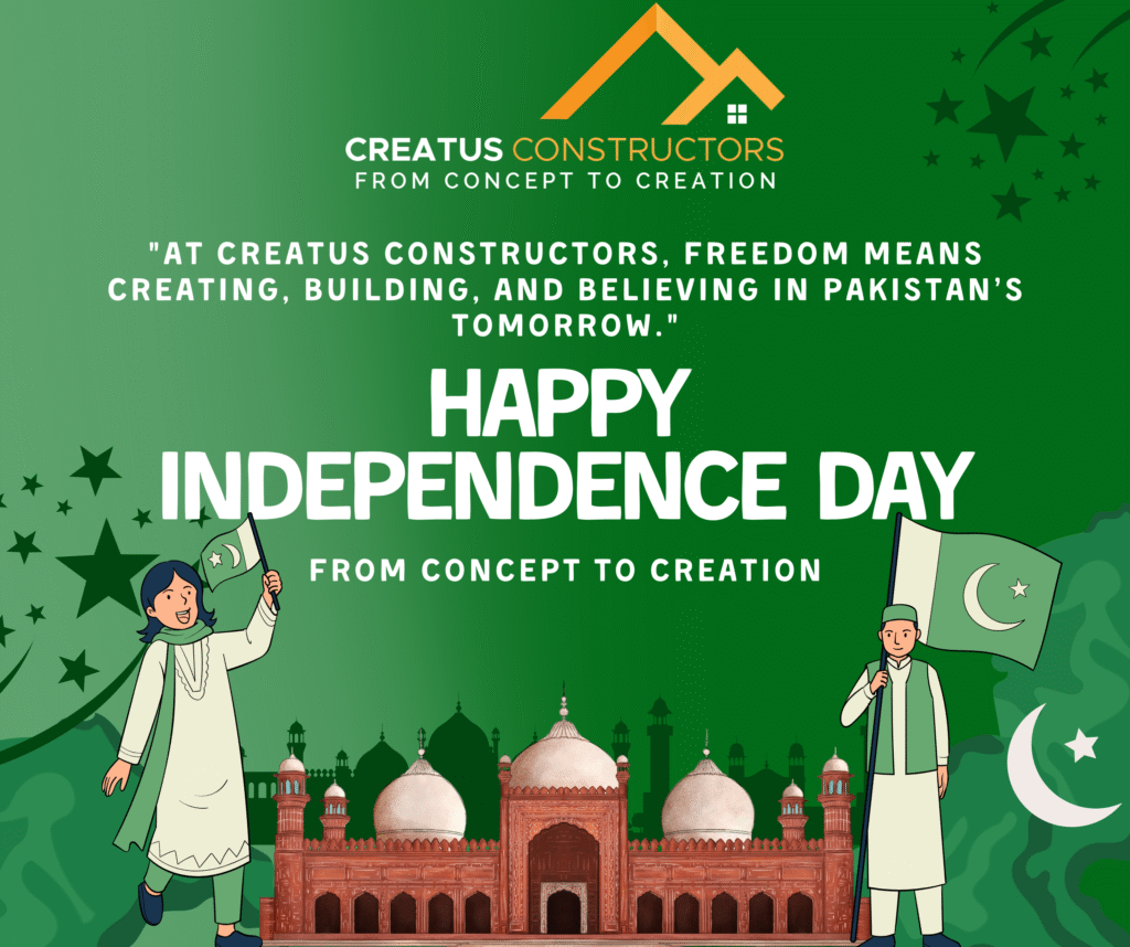 Happy Independence Day, Pakistan!This 14th August, we proudly celebrate the spirit, strength, and sacrifices that laid the foundation of our great nation. At Creatus Constructors, we carry that same spirit into every project, building homes, commercial spaces, and infrastructure with unmatched quality and dedication. As one of the best construction company in Karachi, we’re committed